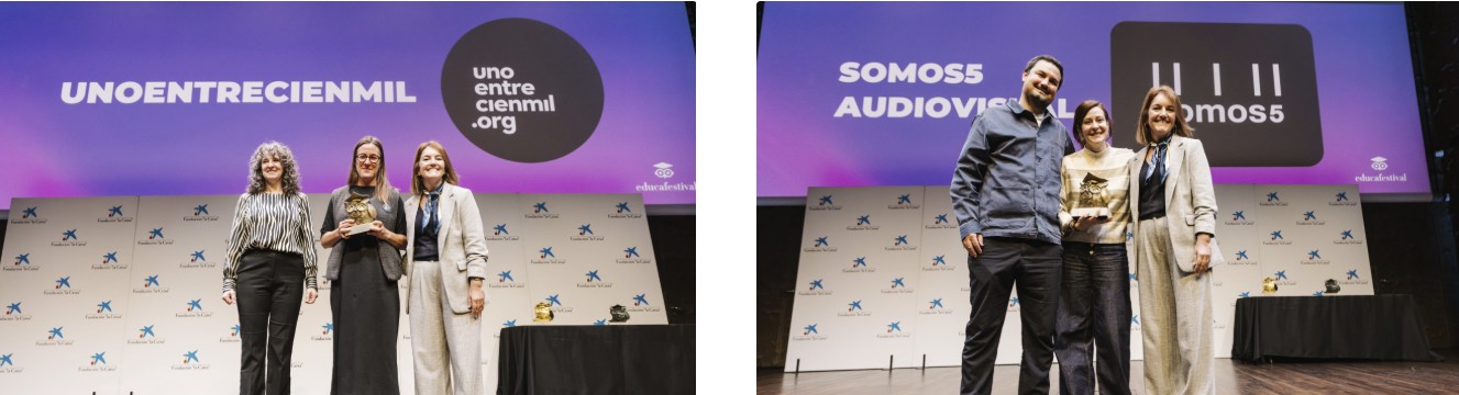 Somos5 y Fundación Unoentrecienmil han sido los grandes triunfadores en la gala de Educafestival 2025.
